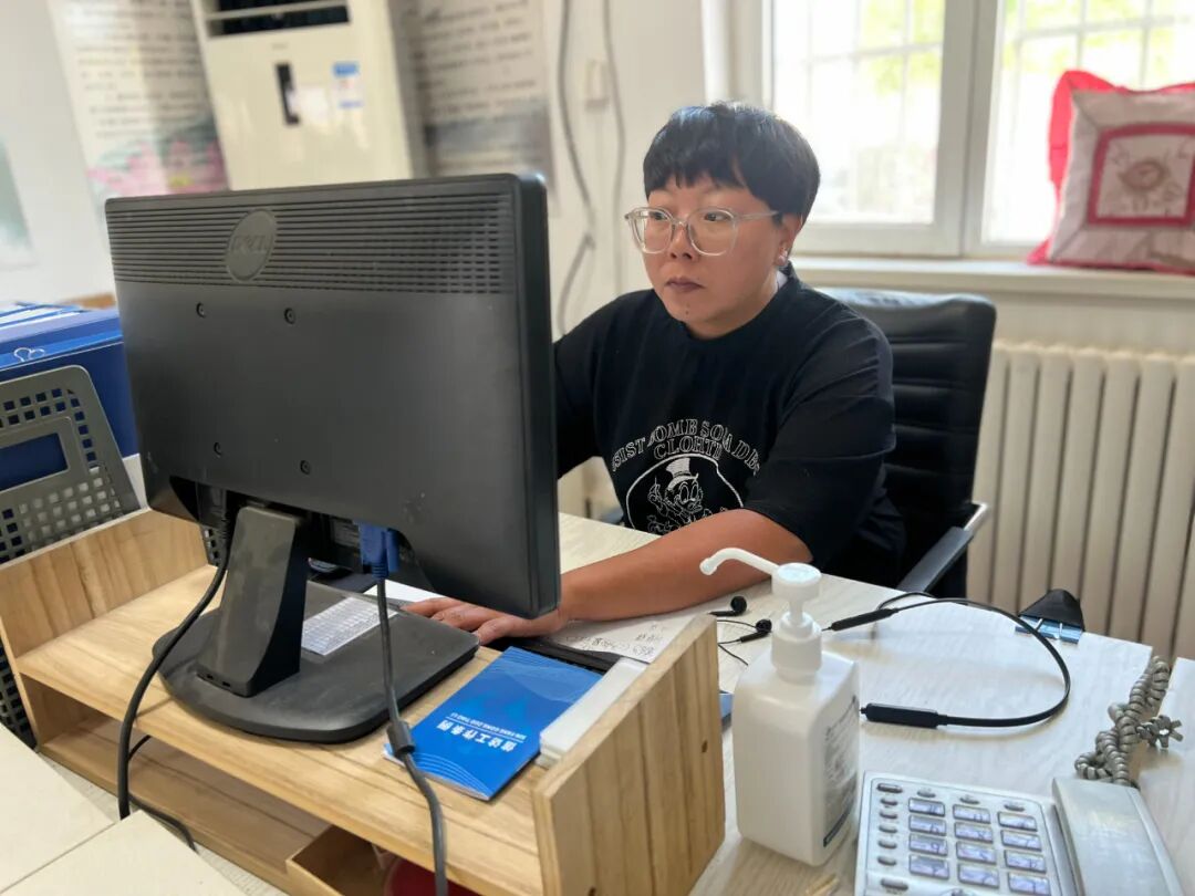 董健蕊在社区居委会的电脑前工作。记者 周磊 摄