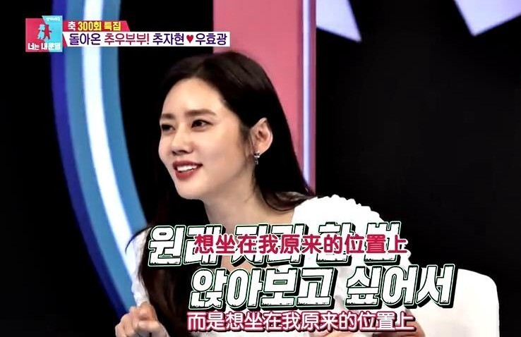 秋瓷炫说,这是她主动和节目组要求的,因为她觉得回到《同床异梦》就像回家一样,她不想坐在其他地方,因为那样她就会像嘉宾似的。
