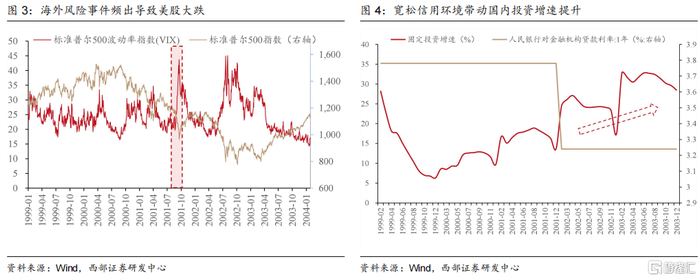 黑天鹅事件频发,市场避险情绪提升。第一轮PPI触底反弹开始于2002年3月,彼时世界刚经历互联网泡沫破裂和911事件两大黑天鹅事件,全球经济深受影响,市场避险情绪提升也导致美股出现进一步下跌。同时刚刚加入WTO融入全球产业链的中国也受到波及。