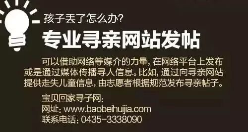 外出时,如果孩子不慎走失,慌乱之中家长往往立刻就去四处寻找,而忘记留人在原地。
