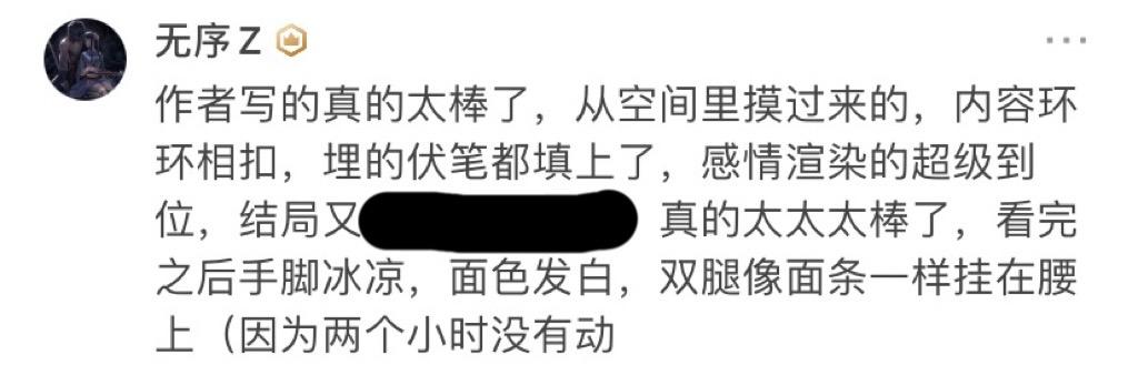 发现这篇文的时候还不怎么火,看的时候总觉得要结束了,但是一往下划发现剩下内容还多,就又放心继续慢慢看,看的很过瘾。