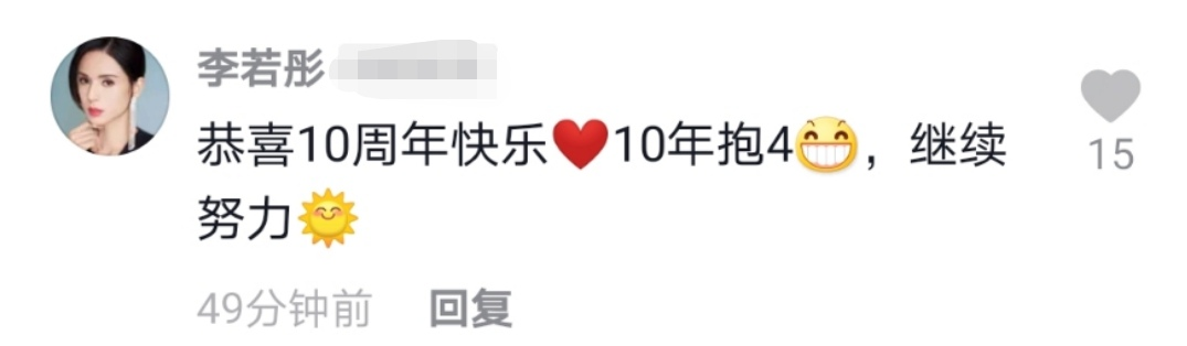 而且演员李若彤也留言为两人结婚十周年送上了祝福。