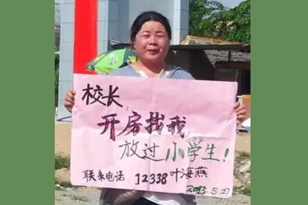 事情激起了民愤,被称作“流氓燕”的公知叶海燕在万宁学校门口举牌抗议:“校长,开房找我,放过小学生。”很多社会人士效仿,声援抗议。
