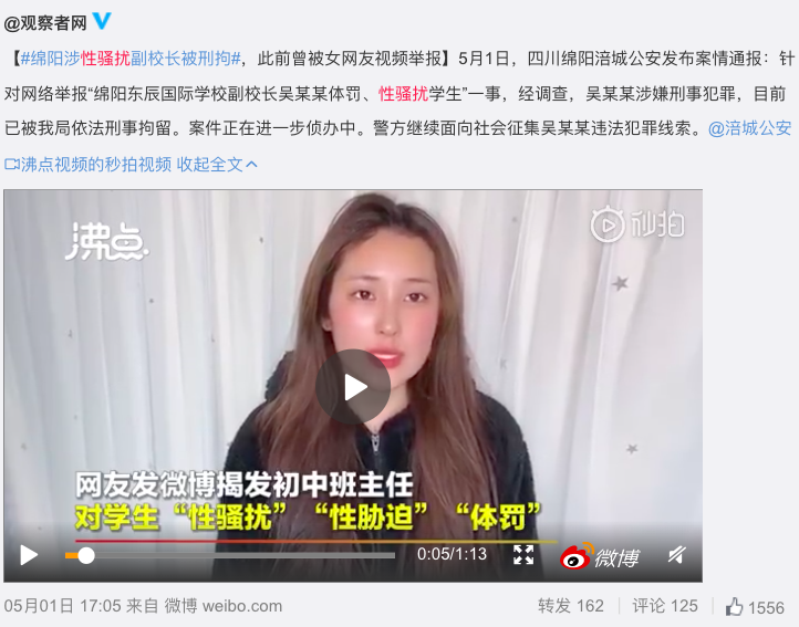 而不幸的是,曝光的女孩及家人受到来自学校巨大的压力,被迫删博。#广汉中学老师性骚扰#的热搜也停留在了今年4月20日。