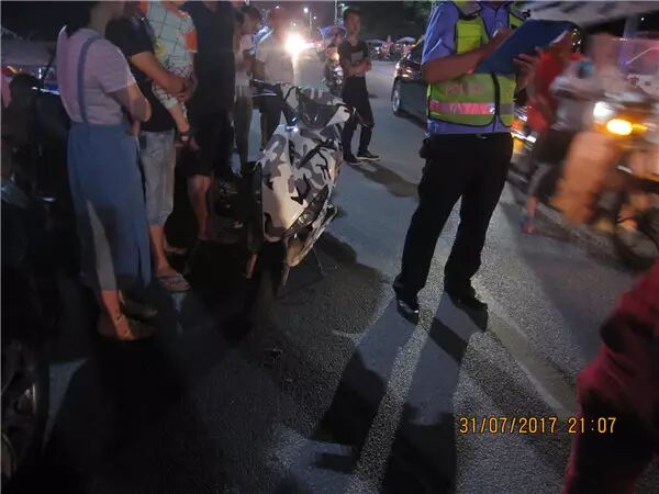 2017年7月31日,晚8点40分,上栗县滨河北路喻某驾驶一辆改装踏板摩托车撞倒同向行走的行人袁某(女、30),造成袁某受伤。
