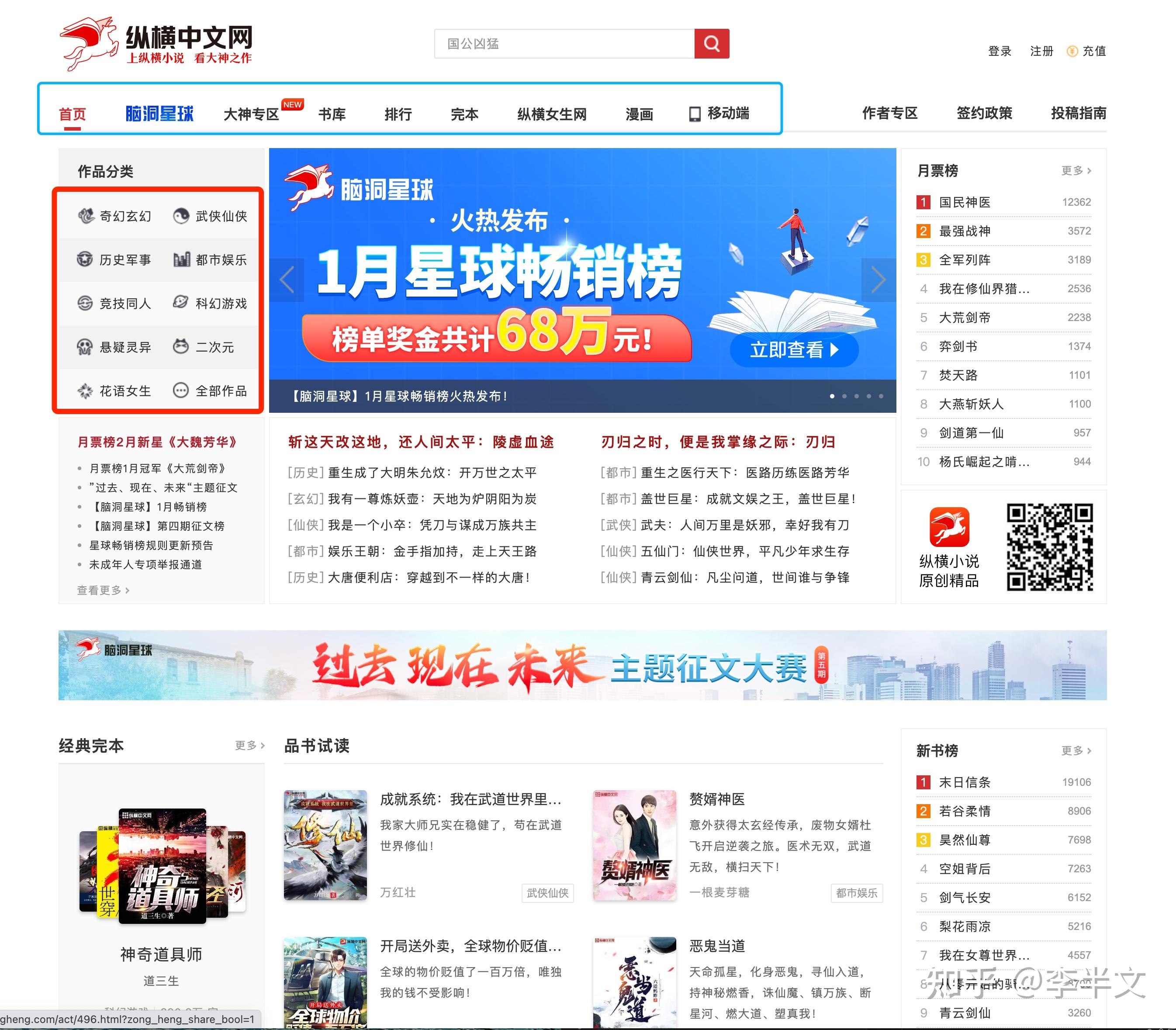 纵横成立的时间虽然比起点晚了好几年,但是仅仅只用了一年半的时间,就进入了中国文学网站前五强,像江南、今何在、萧鼎、血红等大神,都是在网站成立之初进入的,