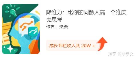 我之前了解到的一个大V柴桑,其实也不是网文作家,但是她创作的成长专栏《降维力:比你的同龄人高一个维度去思考》和《醒脑:另辟蹊径的聪明人养成之路》两本书,为她短时间内一下子带来了20W + 的收入。