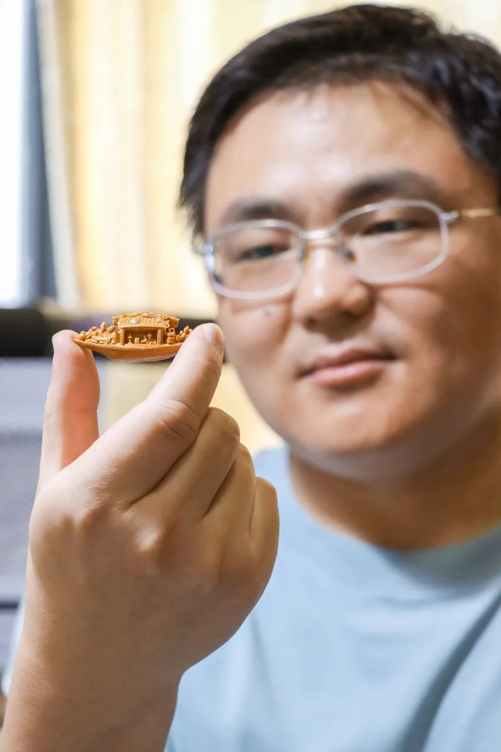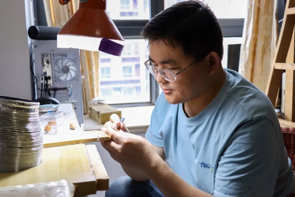 长大后,大钊和大多数同龄人一样,读高中,上大学,到大城市找一份工作打拼。从做工程监理到建筑模型沙盘设计,早已心许艺术的大钊始终无法安心于循规蹈矩的工作。直到2011年来苏州游玩,偶然与核雕邂逅,他才找到了人生的“正确”方向。