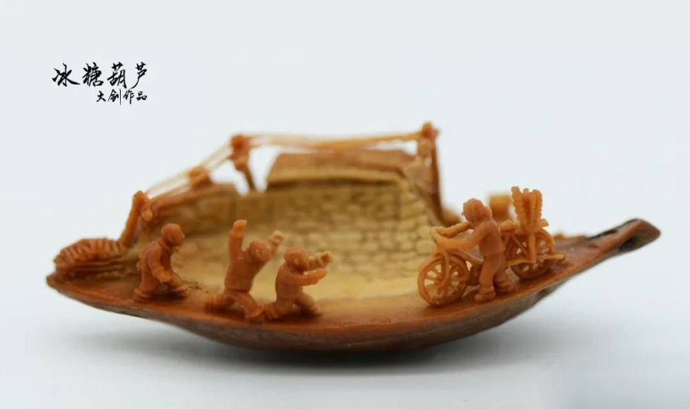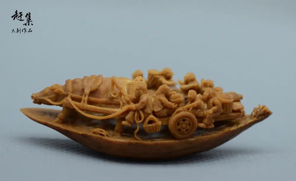 生于农村,儿时的生活经历给予了他无尽的启发。在他的乡村题材作品中,“80后”的记忆跃然“核”上:一家子坐着牛车去赶集踏春、泥瓦匠上下配合砌瓦房、村头小贩卖冰糖葫芦的、农民开着拖拉机晃晃悠悠路过……他说,创作题材是取之不尽的,对生活的热爱与细心感悟会引发无数的灵感。