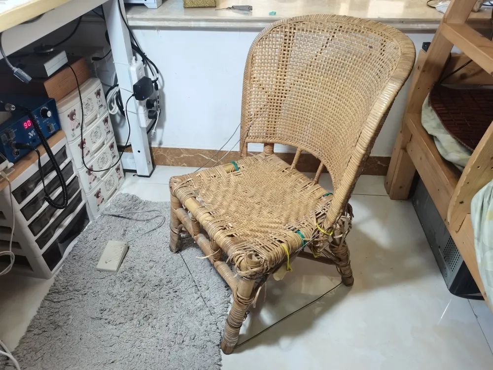 而说到“冷板凳”,大钊笑着指了指自己正坐着的小藤椅:“这就是我2014年刚入行时买的‘冷板凳’,这些年我一直带着它。”椅子边角早已磨损破烂,变形的框架、缠绕的铁丝,静默地见证着这位手艺人潜心钻研核雕技艺的漫漫长路。