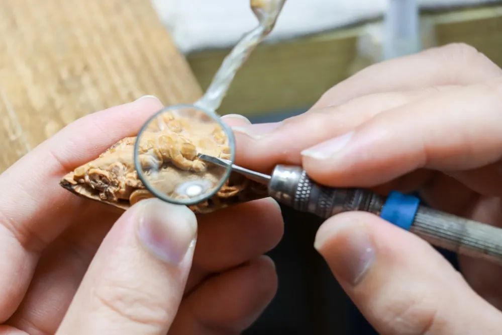 2014年,他毅然辞去了上海的工作,来到核雕发源地苏州,全身心投入到核雕技艺。