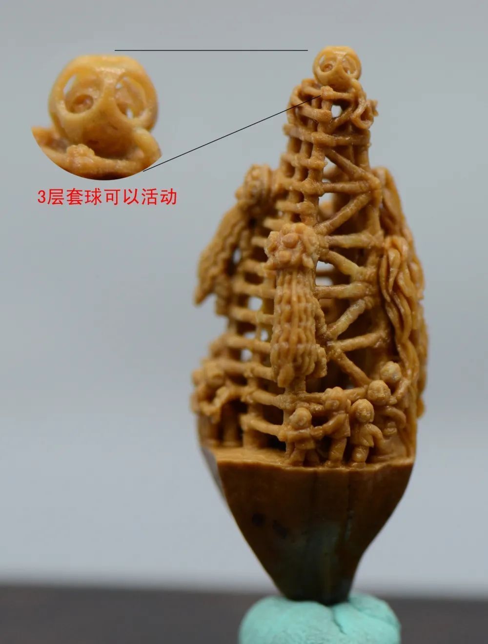 更令人称绝的,是他绝无仅有的“鬼工球”雕刻,在两毫米的球体内又嵌套了两层镂空小球,且3层套球可自由活动,极其考验手法与耐心……