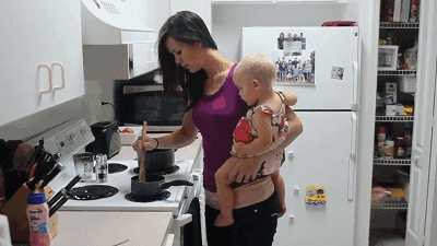 自从生了娃,掌握了一门独门绝技叫做“单手做饭”!