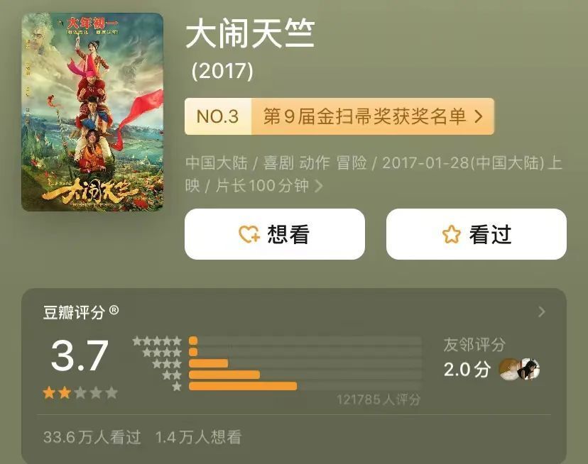 2017年,因为《大闹天竺》的口碑扑街。