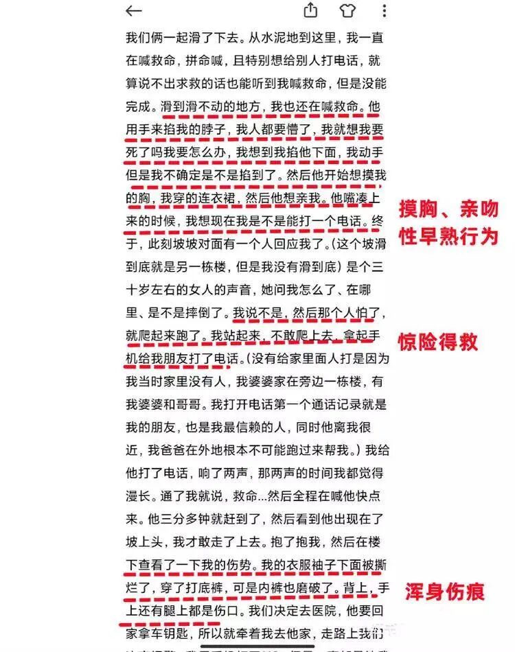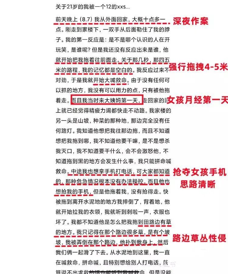 在一番较量下,对方用身体压住了这位21岁的女孩,随后,开始进行性侵,先是摸胸、随后亲吻……就在女孩绝望呼喊之际,一位大姐回应了她,吓走了男孩。