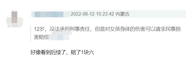 鉴于涉及未成年人保护法,12岁男孩只是被警察批评教育了一番,也有人爆料好像只是赔偿了1块六,随后不了了之。