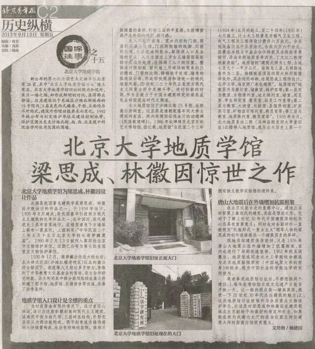 她并单独设计了北京大学地质馆,据曹禺同志告诉我,母亲还到南开大学,帮助他设计过话剧布景,那时他还是个年轻学生。母亲喜欢交朋友,她的热心和健谈是有名的,而又从不以才学傲视于年轻人或有意炫耀,因此,赢得许多忘年之交。母亲活泼好动,和亲戚朋友一道骑毛驴游香山、西山,或到久已冷落的古寺中野餐,都是她最快乐的时光。