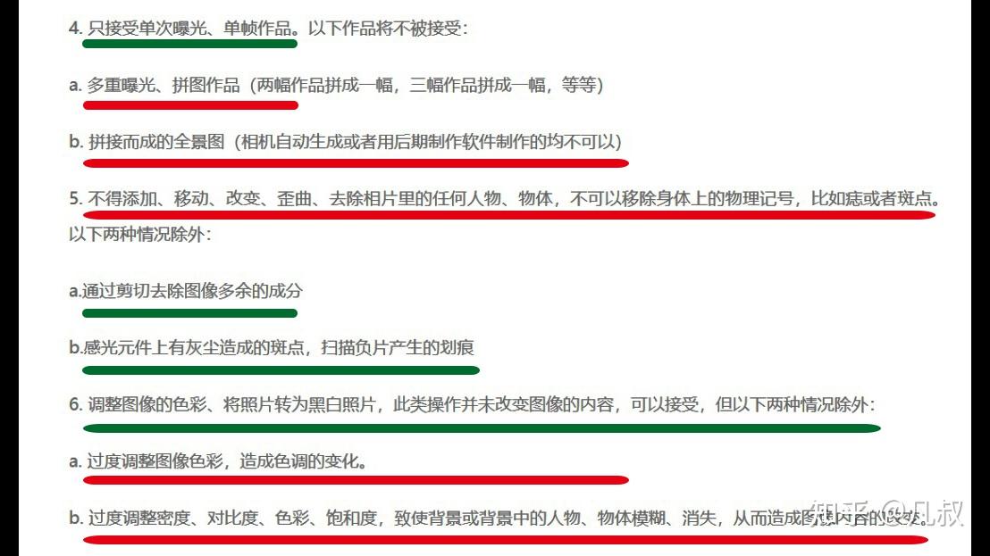 也并非完全不能后期,甚至都可以将彩色照片转换成黑白的。世界是彩色的,拍摄的彩色照片,却可以转成黑白片来参加号称最具影响力的新闻赛;灰尘、划痕都是真实世界客观存在的,也被记录了下来,怎么说P就P了呢?多重曝光只是按多几下快门,底片记录到的也都是真实世界呀,为什么不行呢?全景图就更匪夷所思了,相比单张取景,全景图取的更大更全,却被说不合规?