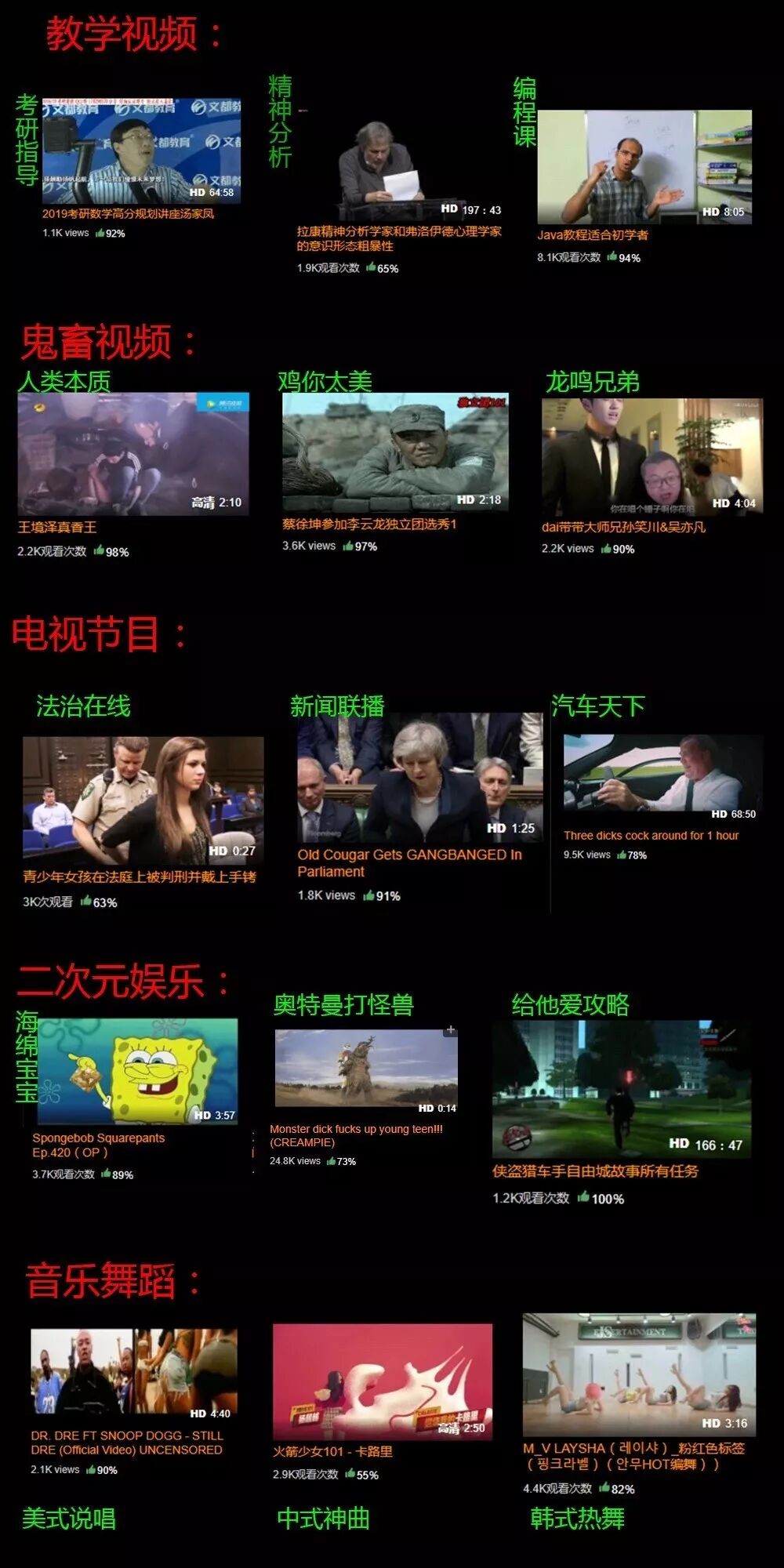 除了促进人类繁衍形式的多样化交流以外,PornHub还包含了张宇数学、鸡你太美、流行音乐、编程教学、海绵宝宝等主流内容,让每一个点进网页的人都能找到自己的精神归宿。