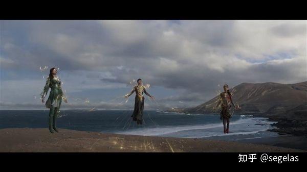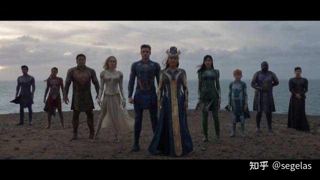 或许也正是为了强调“集中于地球人类文明“的主题,对于永恒族自身的背景,导演做了尽可能的简化交代,用开场短字幕的方式一带而过,甚至在永恒族在宇宙之上的部分,也始终让他们讨论着地球的“美丽”,并将画面集中在蓝色地球的大特写上。借此,她将永恒族背后的文明剥离存在感,强化对地球文明的集中,而永恒族也就此成为了地球文明的一个表达层面。