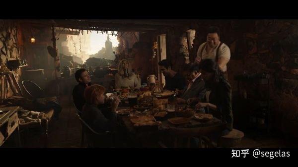 而电影后半段,赵婷对于表剧情层面“永恒族崛起”标配与主题表达的结合,也就源自于“人性不受引导的自然性”。永恒族摆脱了自己作为神的高阶引导,而是以自身情感为纽带,以内心本愿为动力,也更深入地融入了人类,与他们站在一起,而非“时而不小心掺合进人类”的居高临下。瑟希等人寻找到吉尔伽美什和善娜,一群人其乐融融吃饭,少年戏弄了吉尔伽美什,风景与引子里的“神性和谐”截然不同地轻松欢快,便是对团队“去神化”、“归人化“的开端引导。而赵婷加入到永恒族主线中的人类印度大叔,贯穿全片的伊卡洛斯与瑟希、瑟希和人类的关系、暗示性的斯普利特对伊卡洛斯、吉尔伽美什与善娜找到出路的爱情线索,重建了永恒族团队的关系,也增添了他们的人性色彩。