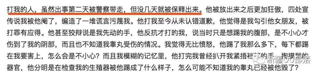我看到的每一个字,都让人心疼,可他却实实在在的经历了整个过程。他并没有像其他人那样选择逃避,受到伤害的他选择了报警。