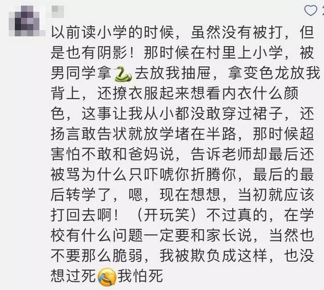 谁也不想将来有一天被人提及时,"他小时候吃过屎",不是每个人都是小说里的谢文东,被欺负的孩子为了能够少挨点揍,往往都会忍气吞声,希望施暴者能够手下留情。