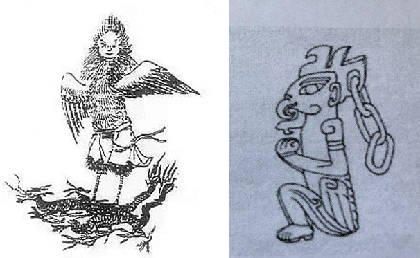图6:江西新干大洋洲出土的商代晚期的玉质羽人雕塑线描图