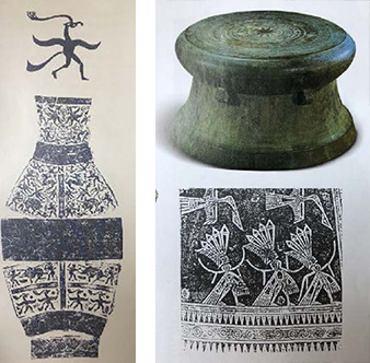 图8:广西、云南地区出土的铜鼓上纹有羽人舞形象