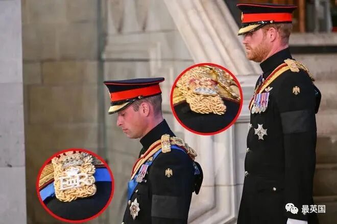 9月17日的女王灵柩守夜仪式,尽管看起来哈里王子被破例允许身穿军装守夜,但是肩章上象征女王的“ER”徽章没有了。