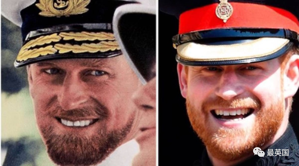 长大后的哈里王子跟菲利普亲王的确长得神似,如果两人同样留着一脸络腮胡,看起来还真有点像双胞胎呢。