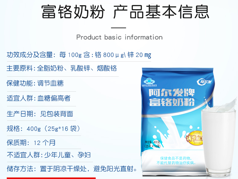阿尔法富铬奶粉,无蔗糖添加,是绿色健康食品,安全健康,调节血糖。小袋包装,饮用方便,价格实惠,适合糖尿病患者食用。已多次购买,值得推荐。
