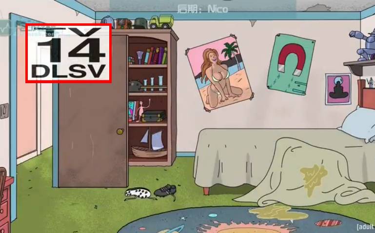 在每一集开头,屏幕右上方必然有TV-14-DLSV的图标。