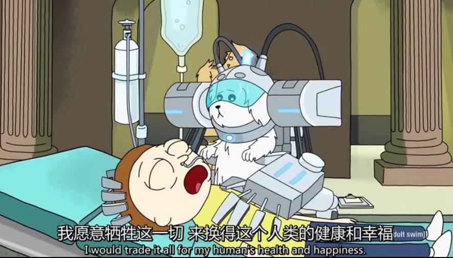 而最让人感动的无非是当Morty生病时,智能化的狗狗愿意牺牲一切换取他的健康。这一幕暖心又让人深思...