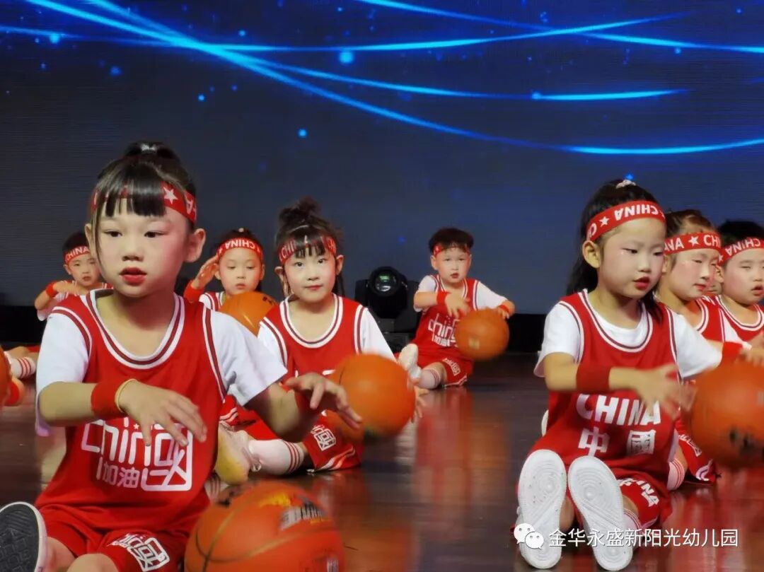在我们永盛幼儿园的校园里,每一个孩子都拥有活力四射的童年,每一个孩子,都有着阳光般灿烂的笑脸。瞧,我们篮球宝贝来了!大一班篮球啦啦操。