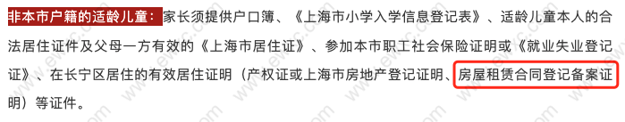 2022年外地户口孩子在上海入学报名,很多学校都要求租房的家长提供上海市住房租赁合同登记备案证明。