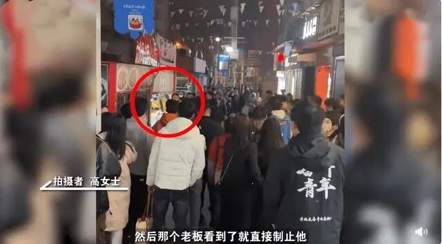 但卖东西的老板看到后,就出言制止,不过似乎并没有什么用,男子对于老板的制止就当没听见。
