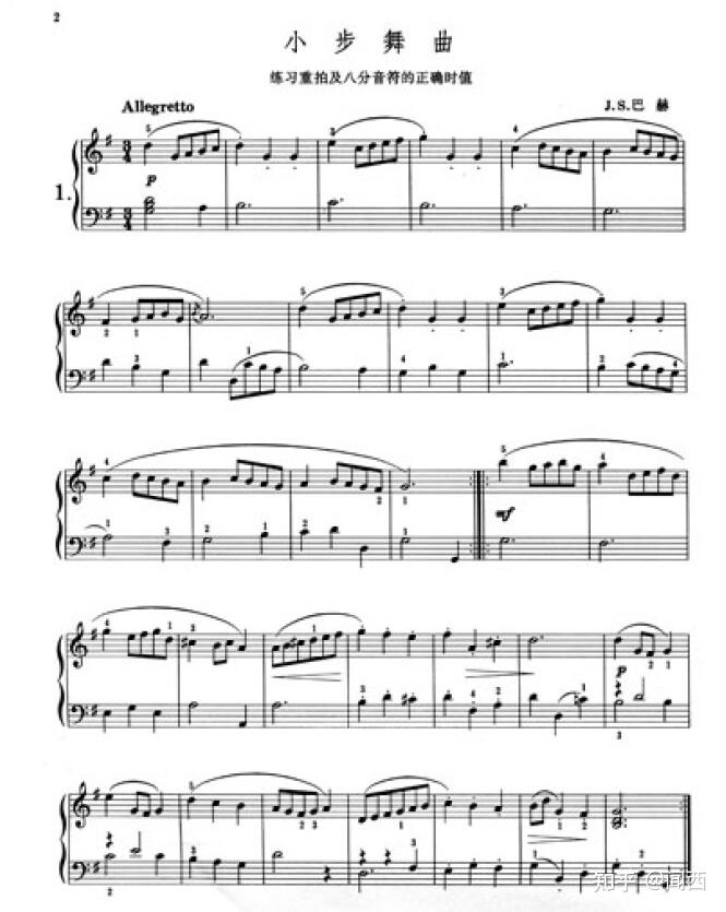 别担心,接下来就是复调了。这本《巴赫初级钢琴曲集》共28首,每条曲子都非常经典,非常好听,其中就有我们耳熟能详的《G大调小步舞曲》,也是本书中的第一首曲子: