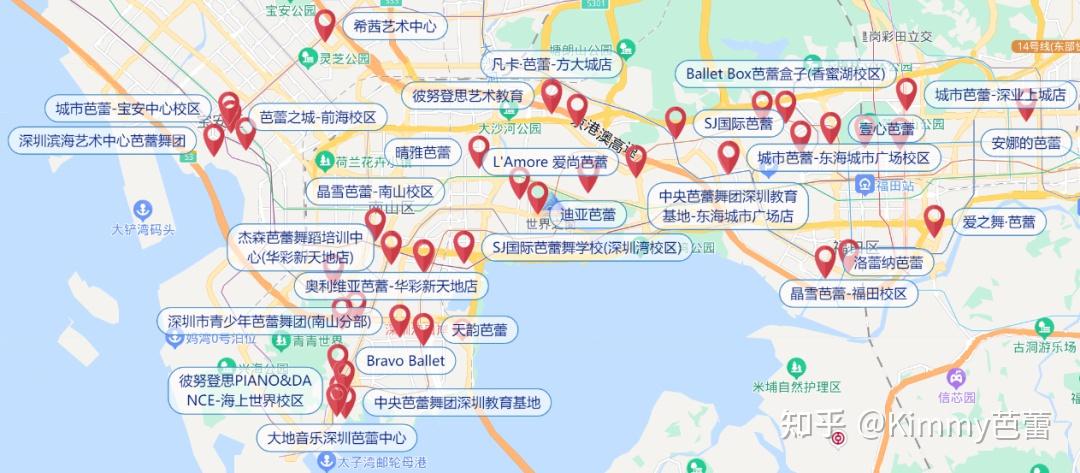 截至2023年5月,“芭蕾地图”盘点了深圳33个大大小小的芭蕾机构,基本囊括了全市90%以上的机构,包括一些师资很强但是不做宣传的低调小机构,剔除了一些没有芭科师资、教学质量差的机构。