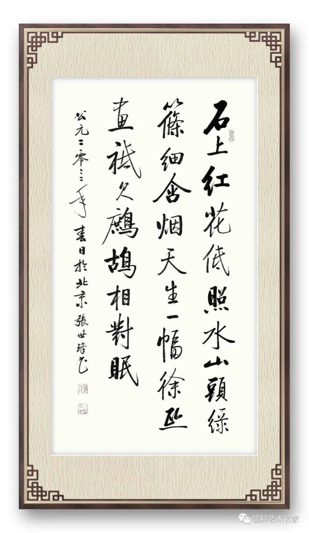 张世锋老师幼承家学,以颜、欧为基,辅以瘦金,打下了坚实的书法基础。青年时期爱慕启功先生的书法,心摹手追,锲而不舍,期间又研习了赵、董、苏、米,逐步形成字体严谨秀美、笔力刚劲洒脱的个人风格,逐渐为社会所认知。作品广被藏家及海内外机构收藏。其艺术成就多次被中央电视台、人民日报、新华社等知名媒体报道。