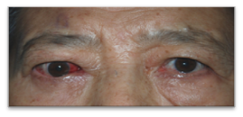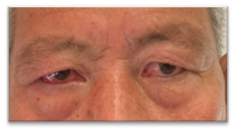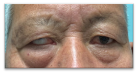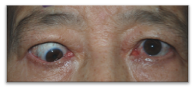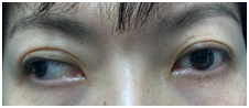 图2 甲亢导致的右眼限制性下斜视(术前)斜视矫正术后1天