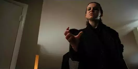 不知道大家有没有注意到,第二季最后一集,当El和警长出发去关上异世界的门时,有这样一个镜头。她走到实验室的大门口,看到自己曾经被关押、被折磨,被强迫与生母血肉分离的地方,她的眼里清晰地闪现出了恐惧。