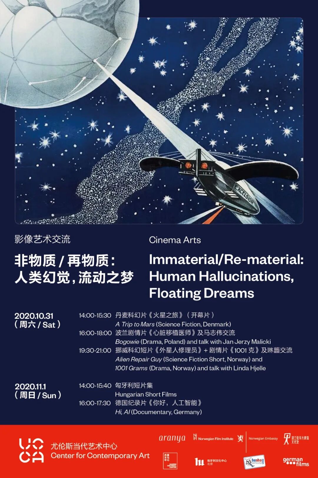 当人工智能成为人类新的不可或缺的工具时,万物的衡量标准是否会被重新写就?人类在所有造物中的地位是否再次受到质疑?我们又能否与不断“进化”的科技繁荣共生?在UCCA大展“非物质 / 再物质:计算机艺术简史”开展之际,UCCA携手阿那亚、挪威驻华大使馆、波兰共和国驻华大使馆文化处、丹麦文化中心、北京匈牙利文化中心、德国电影协会,共同推出一场以“非物质 / 再物质:人类幻觉,流动之梦”为主题的影像艺术交流活动。回望曾经的我们如何面对科技的发展,反思当下我们又该采取何种策略加以应对。