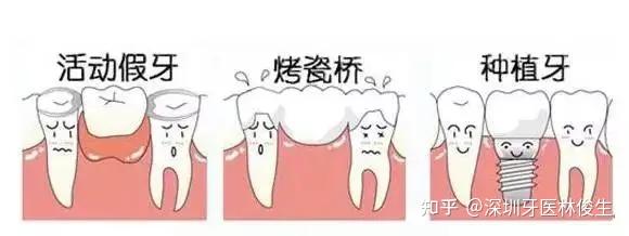 牙齿缺失应当做到及时修复,目前常见的修复方式有3种,活动假牙、烤瓷牙、种植牙。