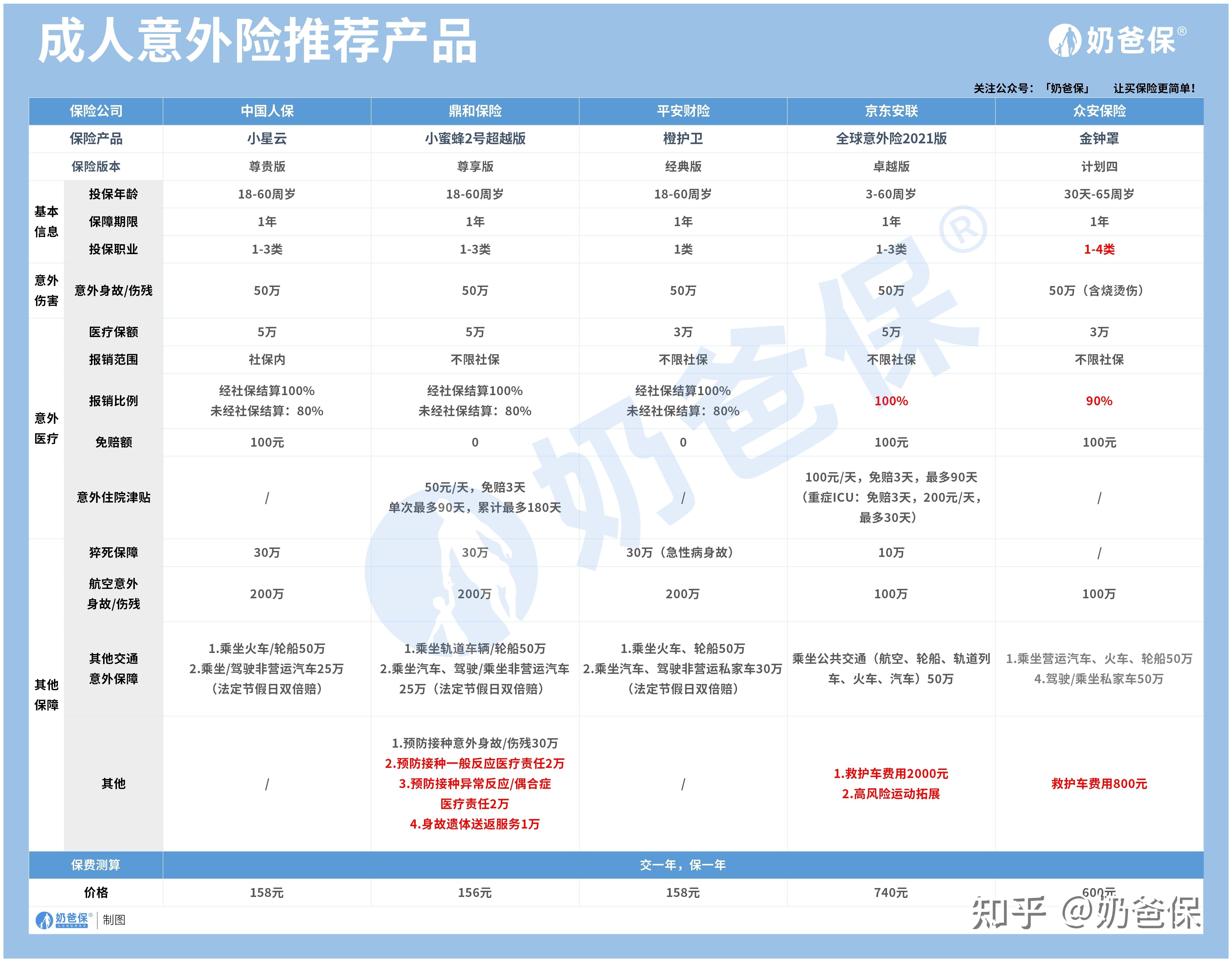 那么意外险产品究竟应该怎么选呢?接下来奶爸将结合具体产品给大家分析,看看2021年性价比高的意外险产品有哪些?