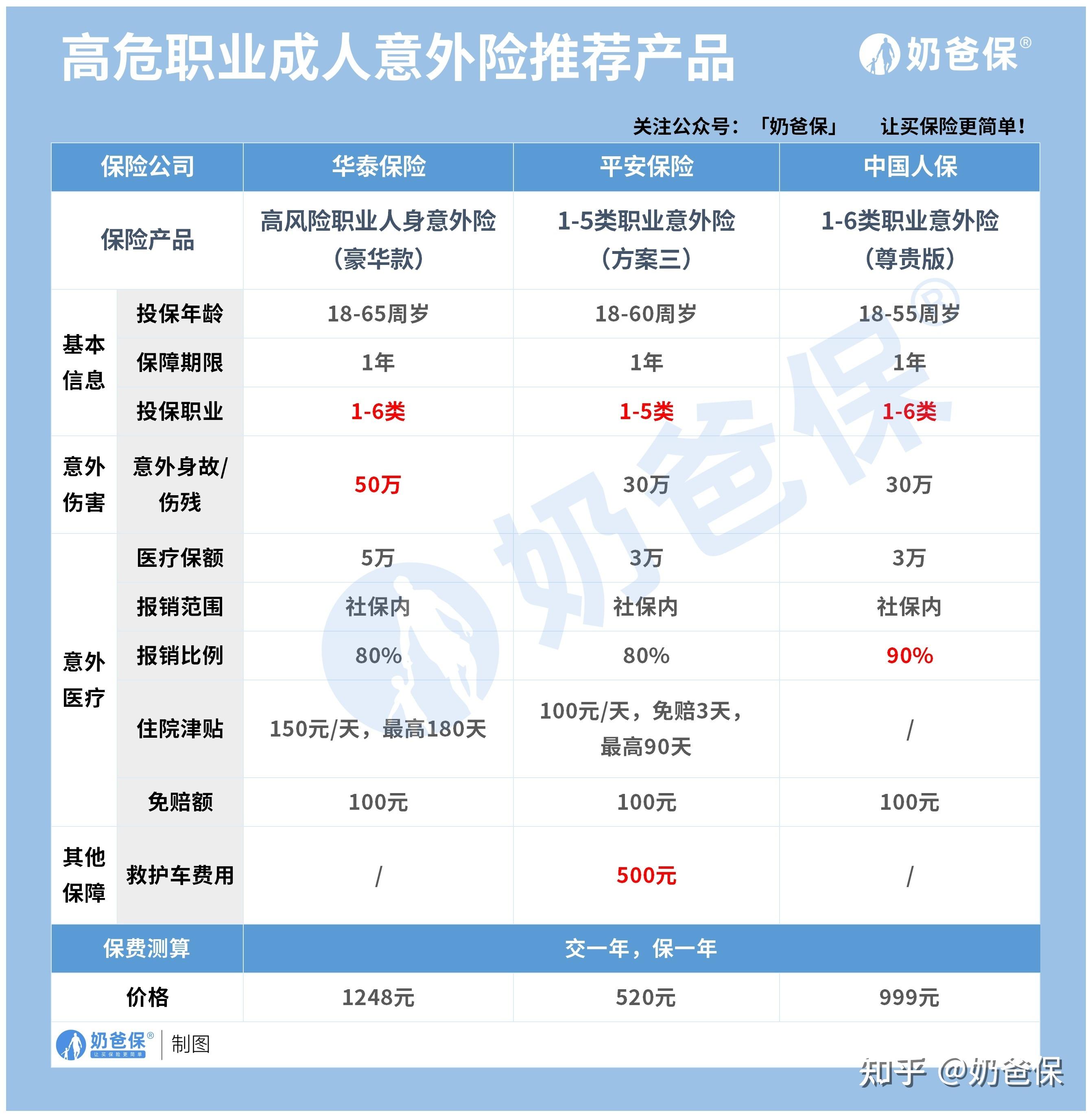 除了这些普通的成人意外险产品,奶爸还整理了最新的高危职业意外险。