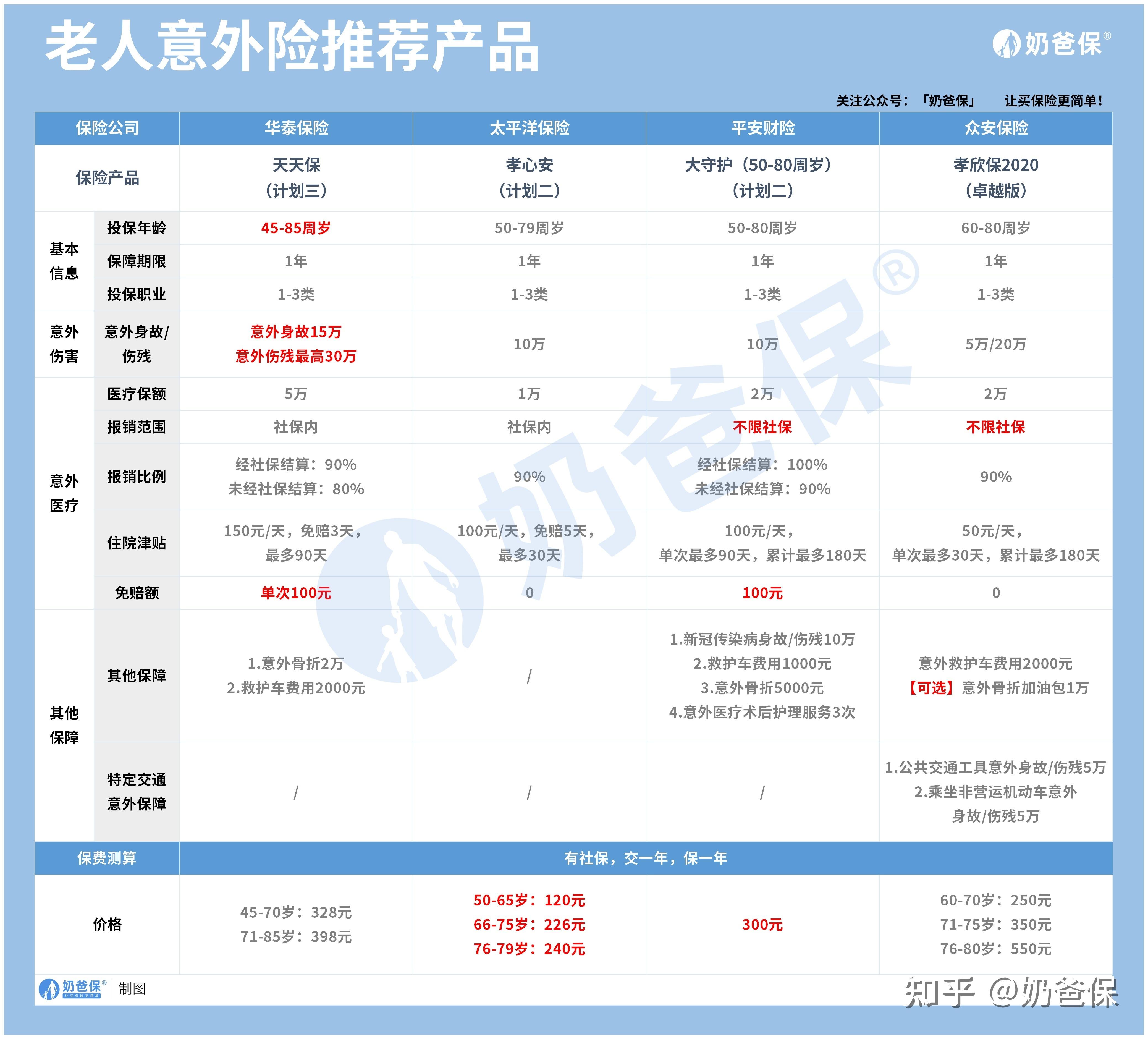 而且不论是0岁还是80岁,都能买到一年期意外险,后面奶爸会根据不同的年龄层给大家推荐性价比相对高的意外险产品。