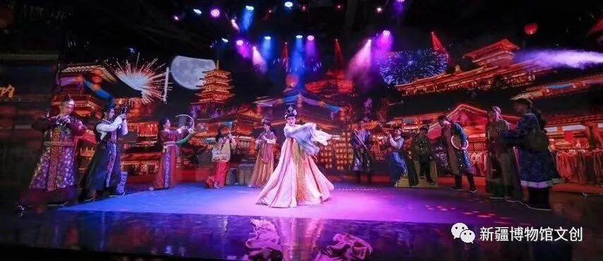 《龟兹乐舞》篇章中,舞者翩翩起舞,充分展现异域风情,妩媚动人,仿佛壁画中的仙女下凡;《亘古习诵》篇章中,古代与现代文化穿越时空、交相辉映,无不体现中华各民族文化的一脉相承、休戚与共的伟大精神;《小河公主》篇章中,“小河公主”随着歌声手之舞之,足之蹈之,歌颂千年文化,传承劳动之美;《音韵和鸣》篇章中,中国传统乐器二胡与西域手鼓的音韵和鸣,还原丝绸之路文化交流的华美乐章;《五星出东方利中国》篇章中,展示戍边将士奔赴前线,讨伐敌军的恢弘气势……《千年之语》以舞台艺术的表现形式,生动阐释文物背后的历史故事,让收藏在博物馆里的文物、陈列在广阔大地上的遗产、书写在古籍里的文字都“活”起来。(新疆博物馆官微)