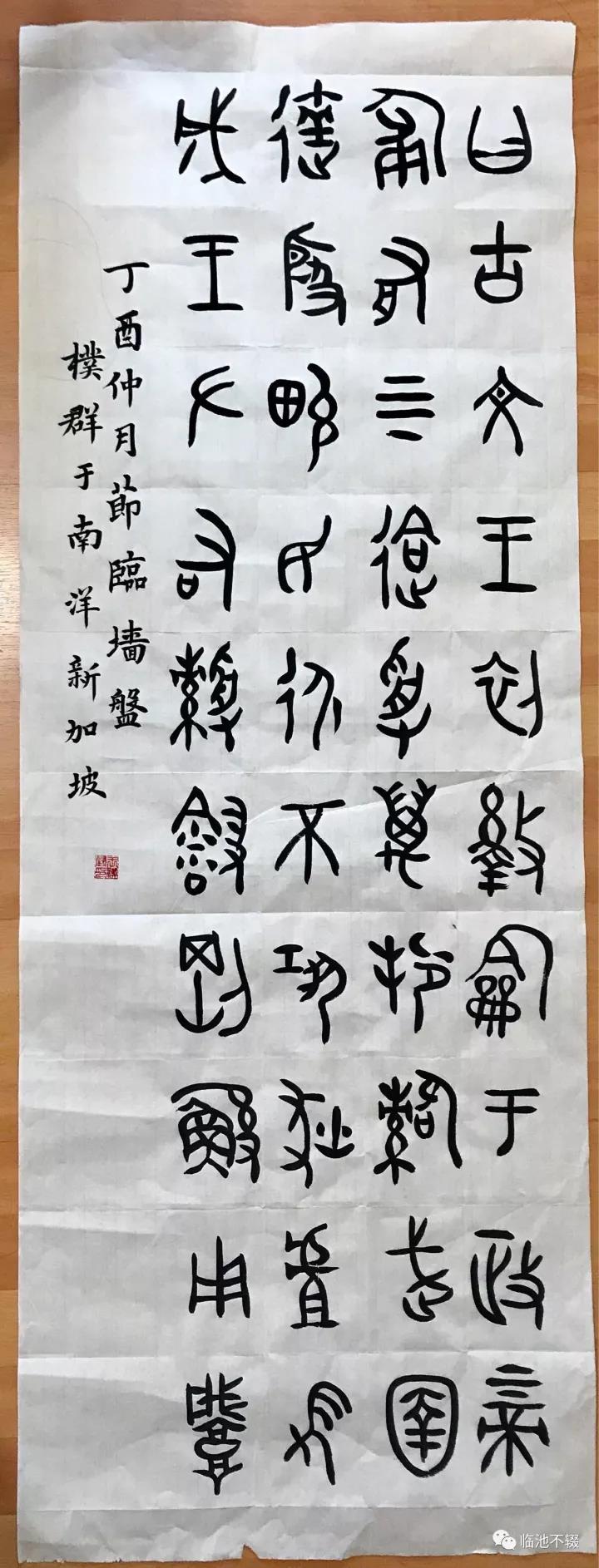 贴一个在新加坡的同学,零基础,从一点儿不会,学习一年篆书以后的成果。