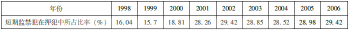 表1 1998-2006年之间福建省短期监禁犯在押犯中所占比率